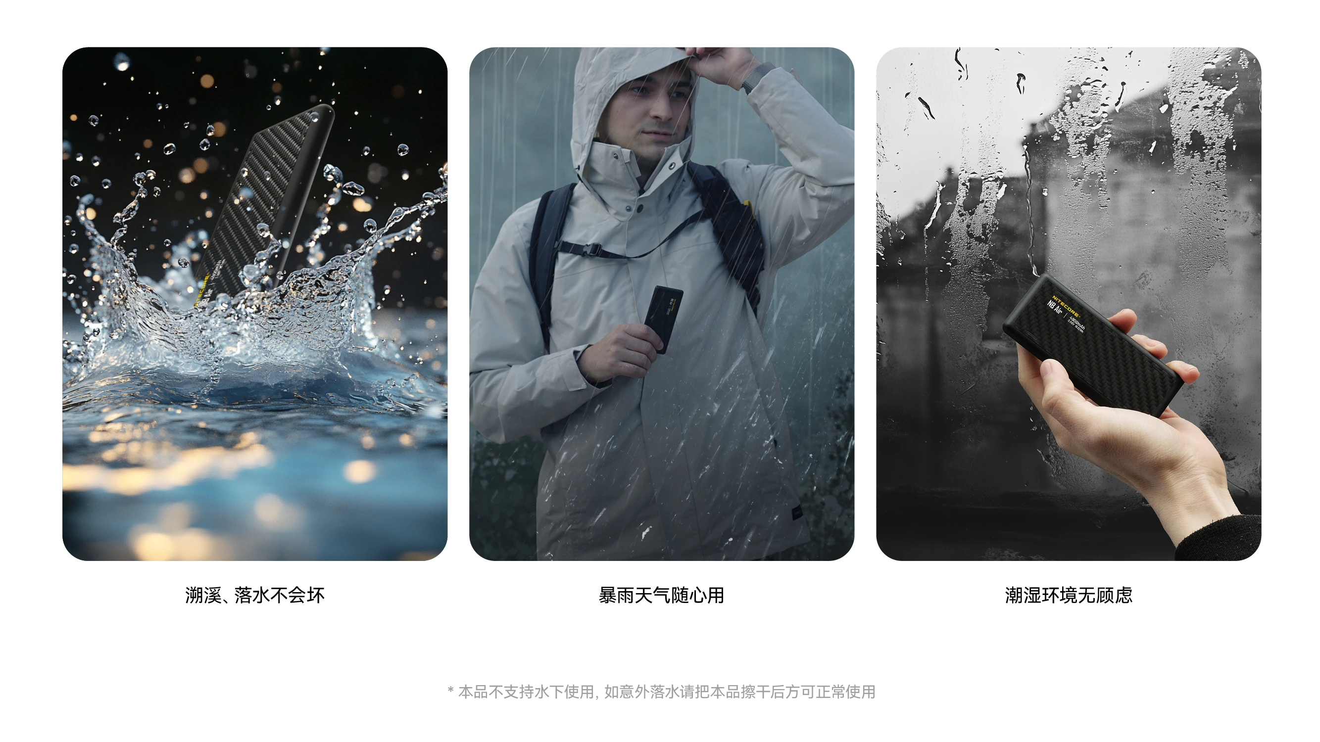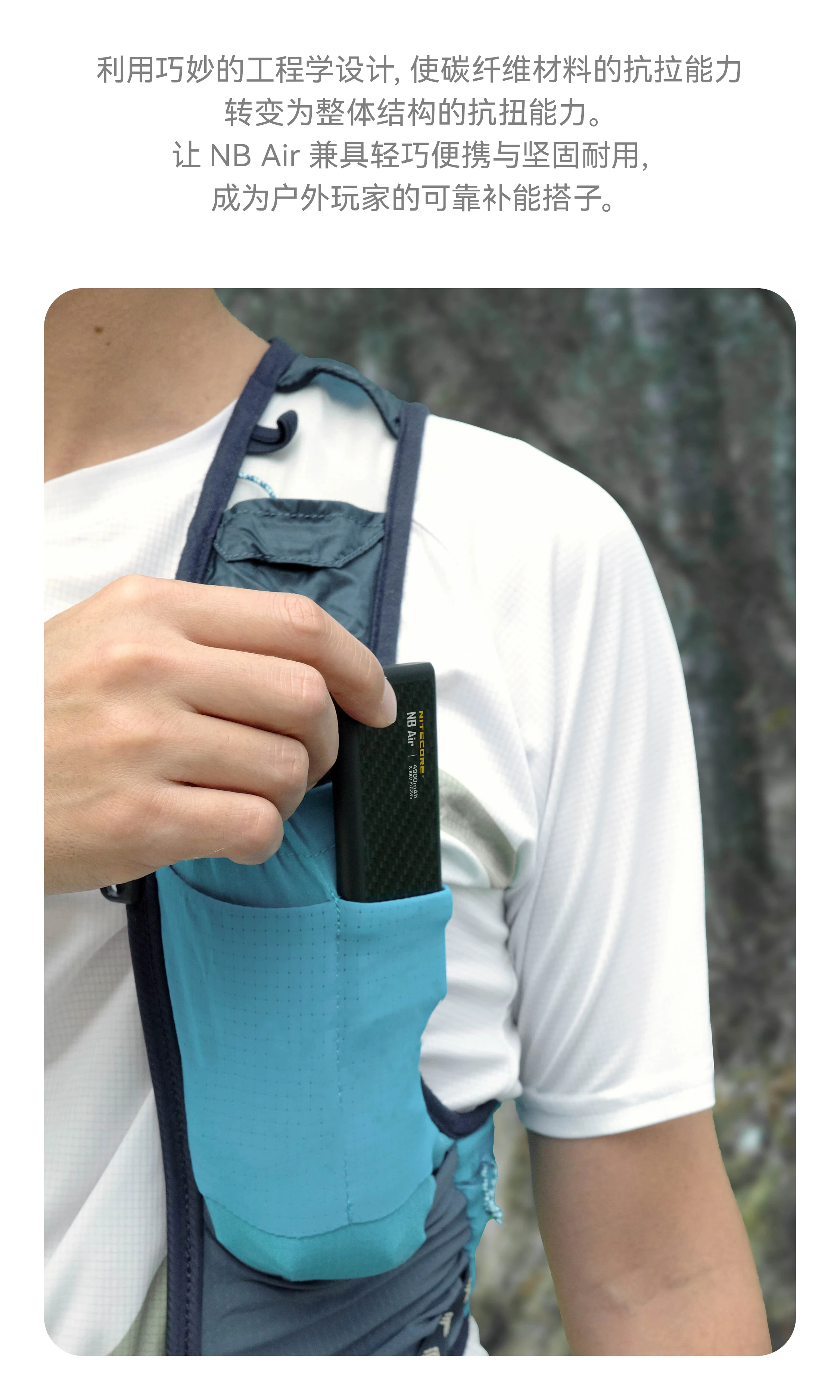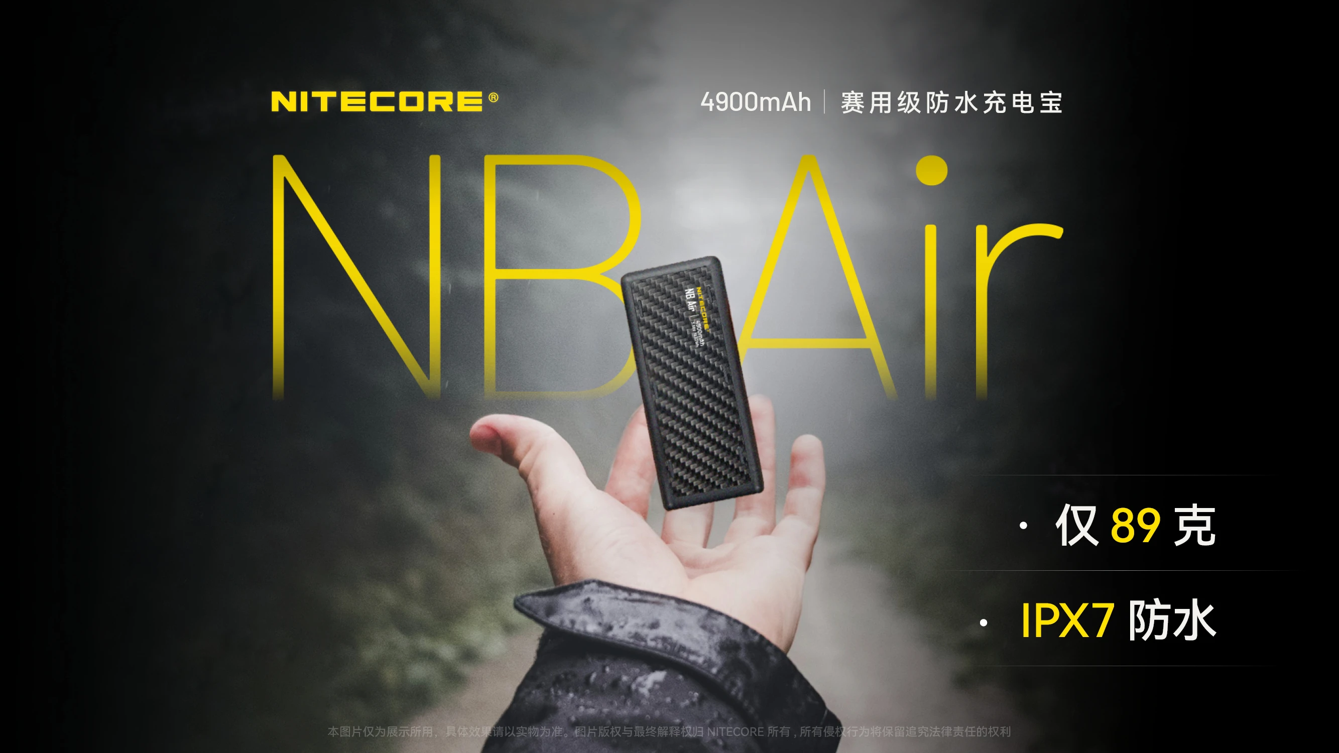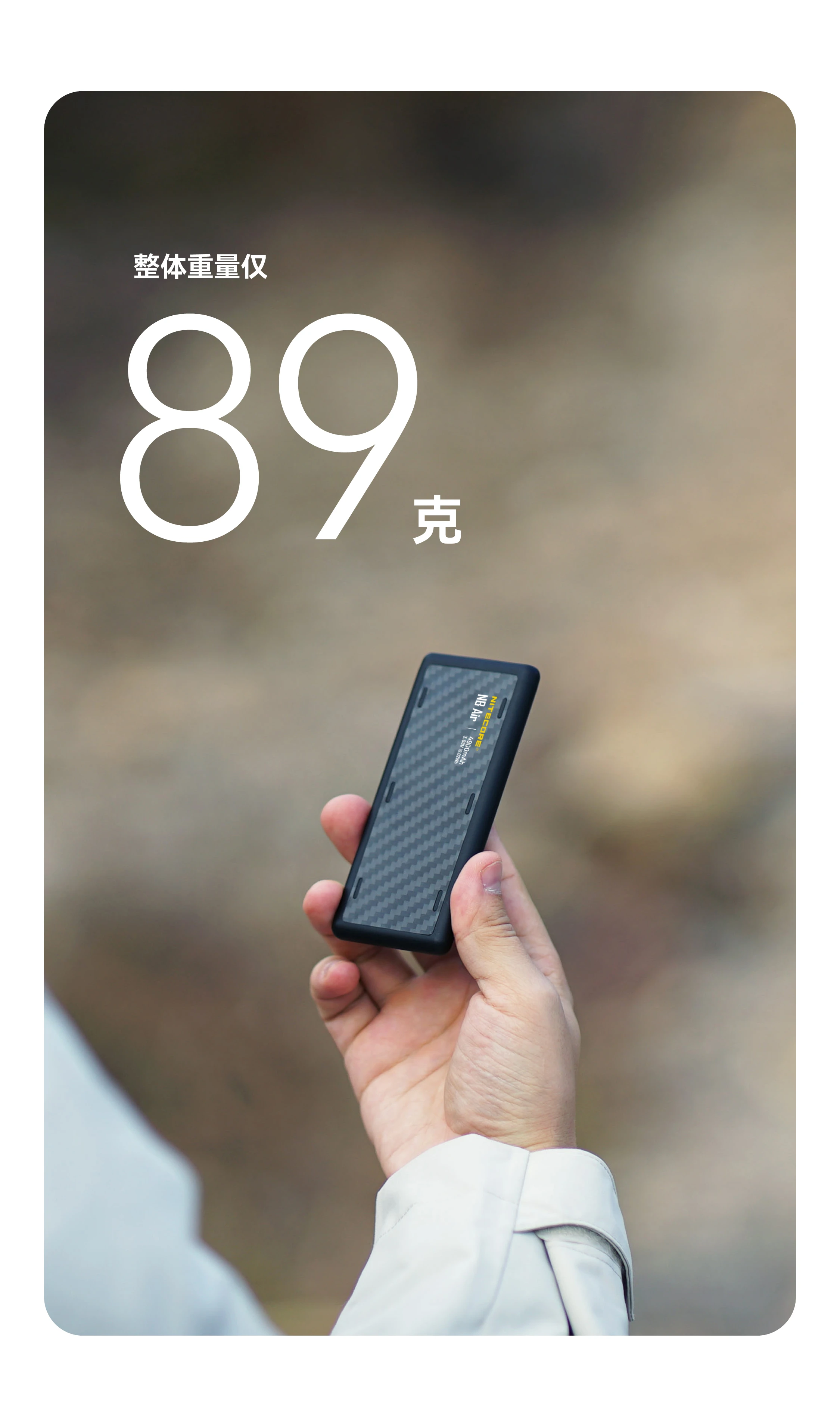 NITECORE奈特科尔NB Air 4900mAh赛用级防水充电宝,以仅89克与IPX7的超轻薄强防水组合设计,成为户外玩家的可靠补能搭子。