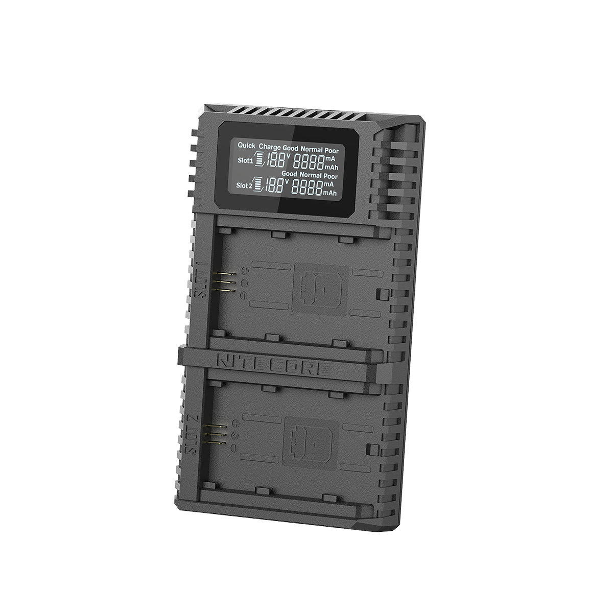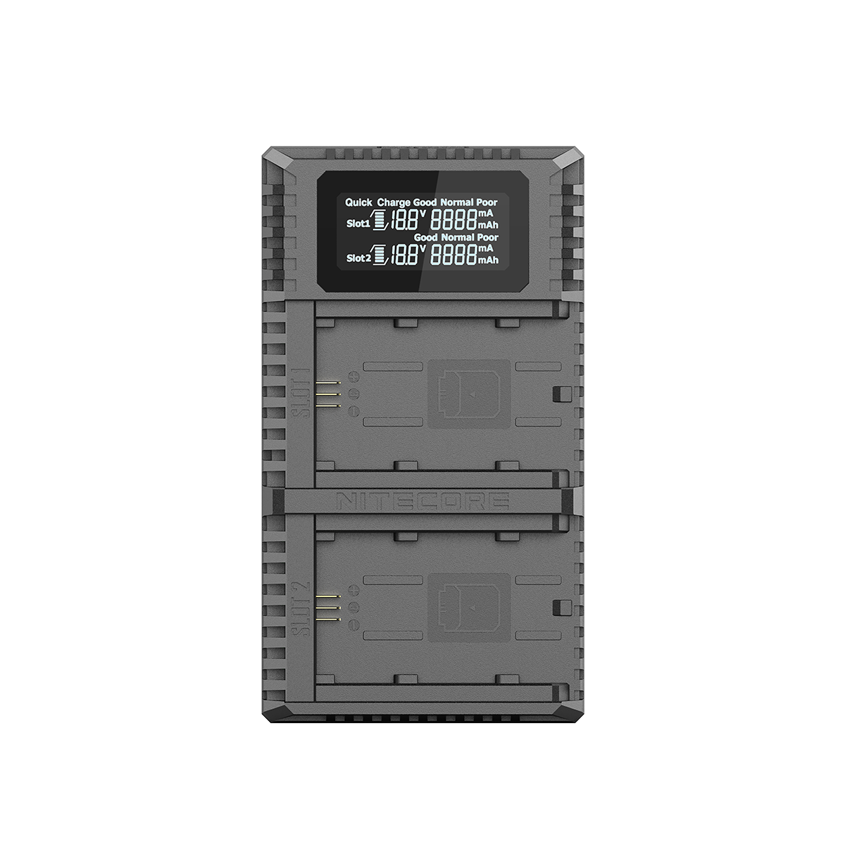 除了充电功率高以外,NITECORE PRO系列双电池充电器还拥有一个直观的信息显示屏,可以显示充电电压、充电电流、充入电量以及电池健康状况等信息。